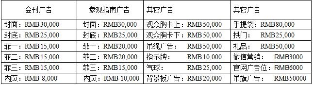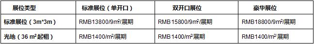 標(biāo)準(zhǔn)展位: (3M×3M)展位(包括三面圍板、楣板、一桌二椅、220V電源插座、地毯、清潔費等)。